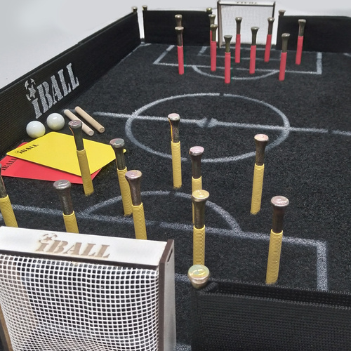 بازی فوتبال انگشتی آی بال ، تلفیقی هیجان انگیز از دو بازی نوستالژیک تیله بازی و فوتبال دستی هست ، این بازی دارای ظاهری کاملا شبیه زمین فوتبال واقعی طراحی شده و دارای دو دروازه با تور و دیواره هایی بلند با قابلیت ارتجاعی در حاشیه آن کشیده شده و دارای پین هایی است که نقش بازیکن های تیم ها را ایفا می کند ، در ضمن داری قوانین خاص و کارت زرد و قرمز می باشد.