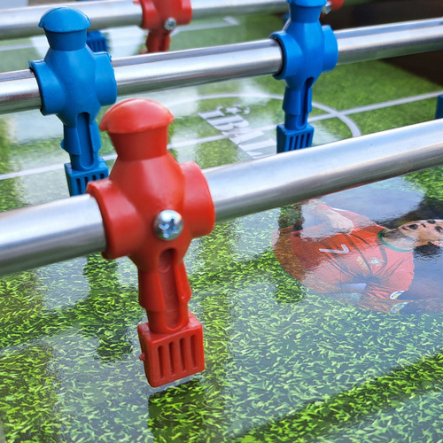 فوتبال دستی تولیدی گروه آی بال تویز مدل iB-106P به صورتی طراحی شده تا برای استفاده در فضاهای کوچک هم مناسب باشد. این مدل 12 آدمک به رنگهای آبی و قرمز دارد. برای هر بازیکن، 6 آدمک و 3 میله تعبیه شده است. آدمکهای این فوتبال دستی به صورت پیچی به میله متصل شدهاند. نحوه اتصال این آدمکها باعث شده تا پس از مدتی شاهد لق شدن یا افتادن آدمکها نباشید. فوتبال دستی تولیدی گروه آی بال تویز مدل iB-106P دو عدد توپ برای بازی دارد. جنسی که برای آدمکهای این مدل در نظر گرفته شده، پلاستیک سخت است.